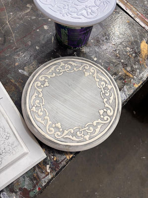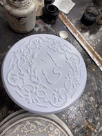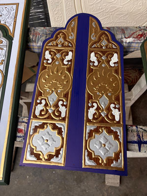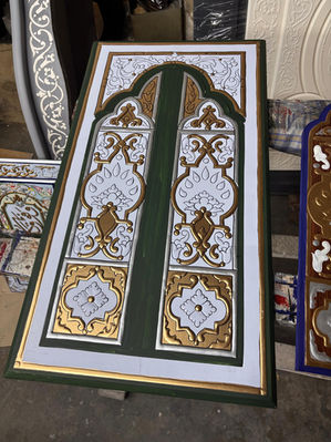 وتُظهر المادة الميدانية أن هذه الحرفة ما تزال تحتفظ بنظام عمل دقيق ومتسلسل، يبدأ أولاً بإعداد مسطح خشبي أو لوح MDF بحسب القياس المطلوب، ثم تجهيز ورقة شفافة مرسوم عليها النموذج الزخرفي المراد نقله. بعد ذلك تُثقب ورقة الشف بالإبرة في مواضع الخطوط، ثم يُرش الفحم عليها لينتقل الرسم إلى اللوحة من خلال الثقوب. وعندما يثبت الرسم، توضع المادة النافرة في حالة النمط النباتي وتُترك حتى تجف، ثم تبدأ مرحلة التلوين بالألوان المطلوبة، تعقبها مرحلة التذهيب، ثم القطع، أي تحديد الخط الأسود على أطراف الزخرفة، ثم التوشيح أو الشكافة، وهي المرحلة التي يُعمل فيها الظل على العروق النباتية لإبراز عمق الزخرفة، وأخيراً تُبخ القطعة باللكلر بوصفه طبقة نهائية حامية ومثبتة. ويكشف هذا التسلسل أن الحرفة تعتمد على تراكب مراحل دقيقة، يبدأ فيها العمل من التخطيط الهندسي للرسم وينتهي بالتشطيب اللامع النهائي.